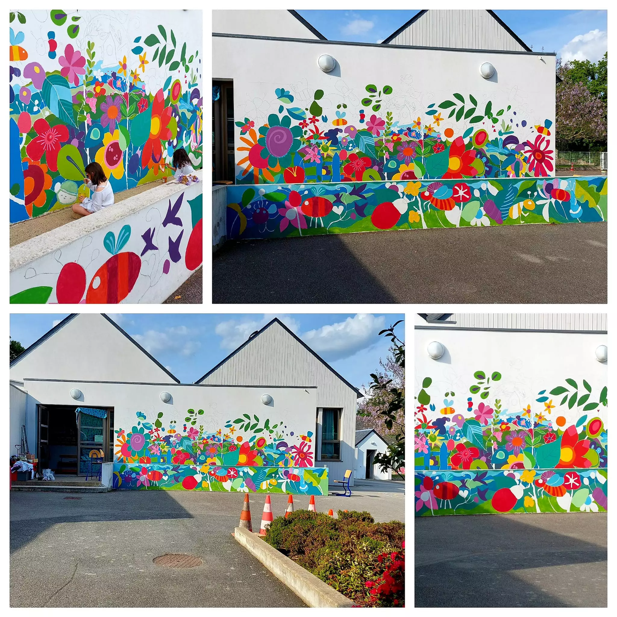 - L’aile élémentaire inclut une infirmerie, une bibliothèque d’école, une cour végétalisée qui présente une collection d’arbustes et de buissons fruitiers, des carrés potagers, un espace enherbé, des bancs et tables pour des activités plus calmes, un mur d’escalade, une structure avec toboggan, un panneau de basket, un terrain pouvant servir à toutes sortes de jeux avec ou sans ballon, une fresque réalisée il y a 3 ans avec une artiste locale, un préau avec table de ping-pong. Les élèves bénéficient également d’une grande diversité de jeux de cour sécurisés, et axés sur les arts du cirque.